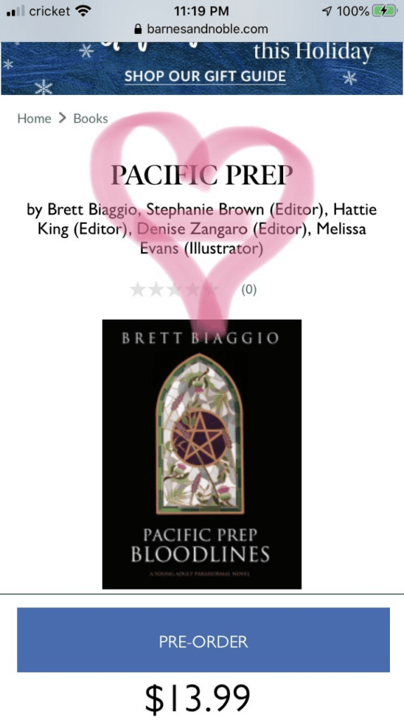 Some know that back in 2013, after the loss of my best friend Jessica Jaros Davis, I started writing THE CURSED JACKSON GREEN, which has since become PACIFIC PREP: BLOODLINES. What most don’t know is that after hitting 91 pages and deciding to dedicate the story to my friend, my mom Denise Zangaro was the very first person to read it. She returned the manuscript with so much red ink that it looked like a murder mystery. Her notes were honest but with love. I’m so grateful for her interest and contribution to my story. How she looked at me, was so encouraging. I’ll never forget it. It’s only right that I list my incredible mom as an editor; after all, she was my first.